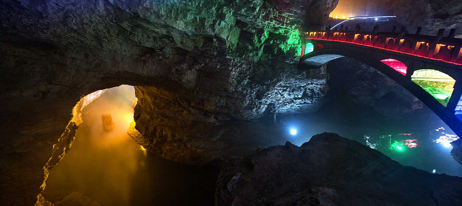 天仙橋:連接黃龍洞第二層和第三層的通道,也是目前國內(nèi)開發(fā)的溶洞中規(guī)模最大的一座石橋。